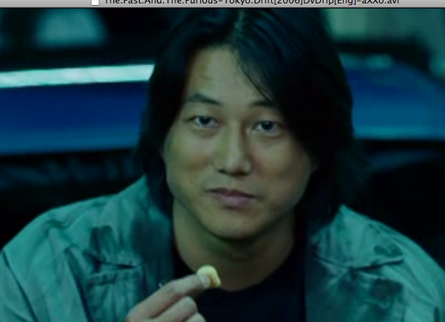 To be fair, I’ve seen the guy who plays Player Guy (real character name ‘DK’ for ‘Drift King’ [btw Japan’s real Drift King has a cameo in the ‘new set of tires!’ drift-practice sequence as a fisherman who approves of XFC’s skilz]), Brian Tee, in a few guest star roles wherein he actually acts. I was pretty impressed since my expectations were lowered so much by this movie (which I kind of love if you haven’t already noticed).