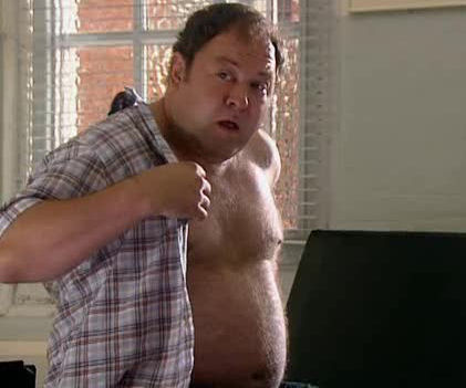 I couldn't find a screenshot of him wrapping his belly in Saran Wrap, but I can't be the only person for whom that was a memorable moment.