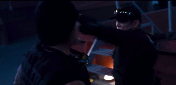 Stallone and Stone Cold fight. It’s an okay fight, lots of throwing each other around, and Stone Cold pretty much wins but chooses to run away when he sees the giant machine gun Terry Crews is using to liquidate a whole bunch of the other soldiers.