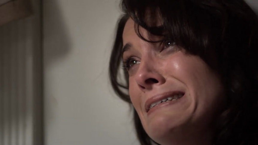 Alternate Future Sarah tells Sarah that these dreams were sent by God and that she’s been given “an opportunity to see things from a divine perspective blah diddy blah.” And that works! When Sarah wakes up, she tells her bosses that she’s keeping her baby, then comes home and cries to Jesus about how she doesn’t know how to be a mother but she’ll figure it out. “Thank you for saving my baby,” she cry-sobs. It is super-uncomfortable.