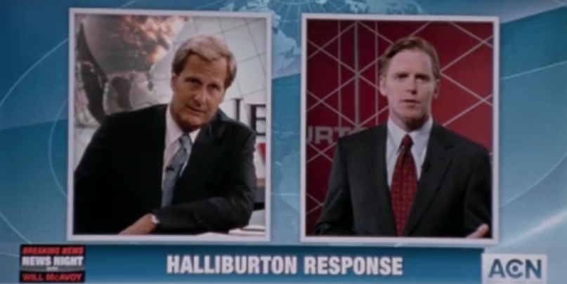 Yeah, Frank, that’s the big conceit of the show — it takes place in 2010, so that Sorkin can use magical hindsight powers to ensure that his reporters cover every story RIGHT. Thus, while in reality the national media took a pretty long time to figure out how fucking bad the BP oil spill was gonna be for everyone involved, in the Sorkinverse it only takes our intrepid news room team a few hours after the initial explosion to not only focus on the environmental issues, but also uncover the government incompetence that contributed to one of the biggest environmental disasters in recent memory.