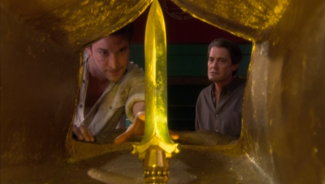 So of course Flynn and Nicole totally fall in love over the course of their adventure-ing, which means that when Nicole’s life is threatened by Evil Kyle, Flynn agrees to help Evil Kyle track down the rest of the spear.