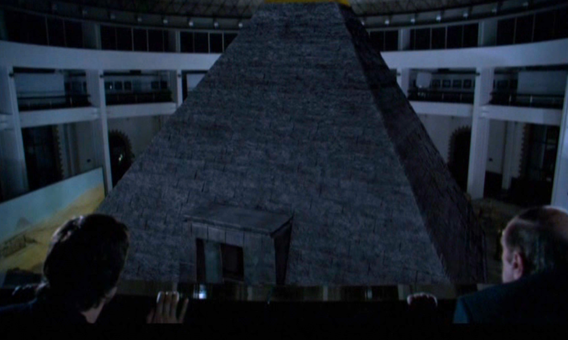 Fortunately, Flynn knows just where Evil Kyle will take the pieces of the spear to assemble them — the same place where we started this movie, a fake pyramid that Flynn was helping build inside a museum! Way to reuse that set, guys. Or what technically counts as a set: